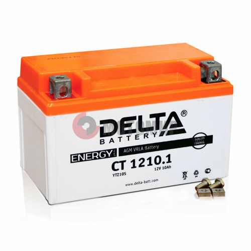Герметизированный необслуживаемый VRLA cвинцово-кислотный аккумулятор Delta CT 1210.1 напряжением 12В и емкостью 10Ач. Разработан специально для мототехники. Изготовлен по технологии AGM (с микропористым заполнителем, пропитанным электролитом) из негорючего ABS пластика. Срок службы аккумулятора достигает 3-5 лет. Высокая стартовая мощность и повышенная энергоотдача. Адаптированы к Российским условиям эксплуатации.